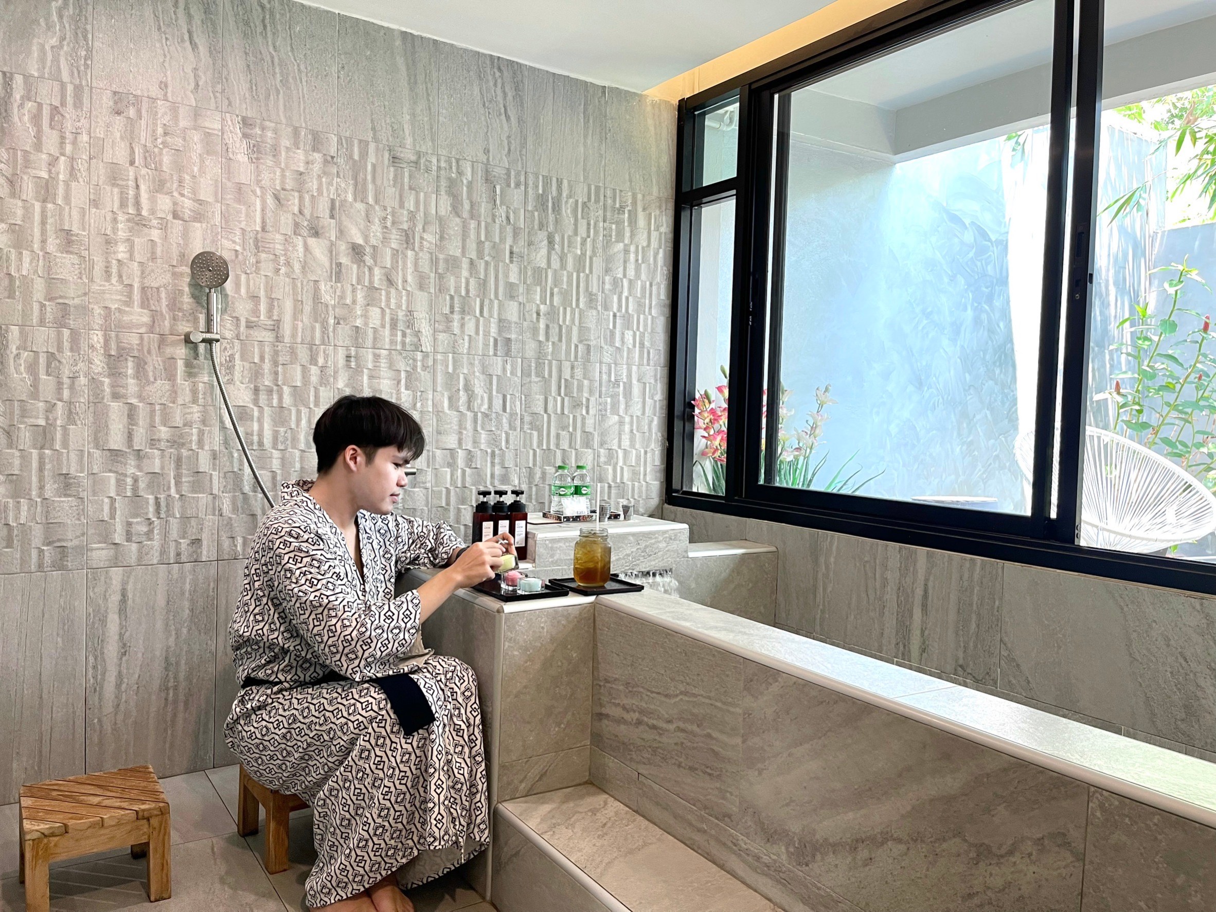 อยากจะบอกว่าฟินสุดๆ แช่น้ำแร่อุ่นๆ จิบชาเย็นๆ สครับผิวไปด้วยย ดีงามสุดๆ