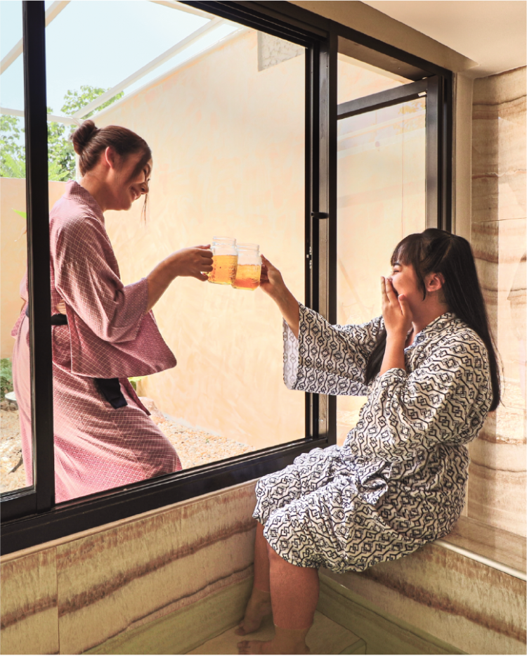 We warmly invite everyone to enjoy the TARA Onsen experience at Tree Tara Hotel, where we offer private onsen, spa services, Yukata rentals, and refreshing drinks for a truly relaxing experience.